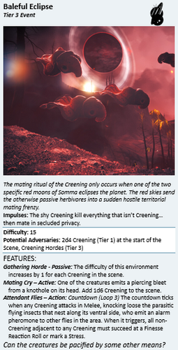 Inspired by "Scavenger's Reign" and "How to Train Your Dragon", this campaign frame uses the mystery of a savage, alien world to tell the story of friends, survival, and what we're willing to learn and sacrifice for them.